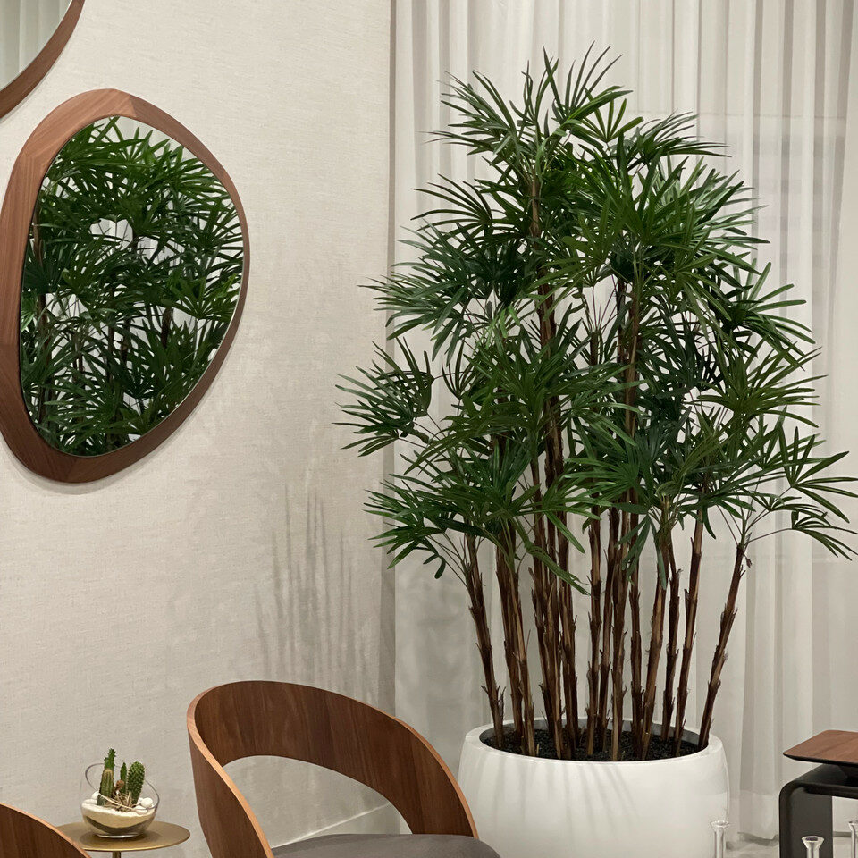 La disposition subtile des frondes, légèrement décalées, permet d’apprécier toute la richesse du feuillage. Ce palmier devient instantanément un point focal élégant, parfait pour une entrée, un solarium ou un espace de réception, et apporte raffinement et fraîcheur à votre intérieur.