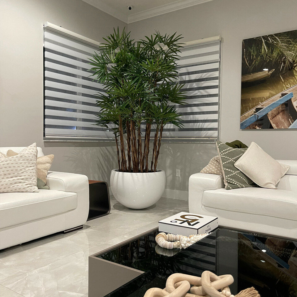 Apportez une touche de nature luxuriante et sophistiquée à votre intérieur avec ce palmier femelle majestueux, présenté dans notre jardinière Tarragona blanc brillant. Ses troncs fins et ses frondes délicatement superposées créent un effet tropical luxuriant, donnant vie à votre espace sans aucun entretien.